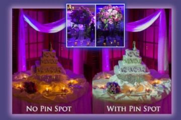 We will highlight your cake with lighting, making it a focal point of the room! Combine that with our uplighting, and your cake will look AMAZING!! Please note that not all facilities will be able to accommodate this amazing service, and will be confirmed in your consultation.